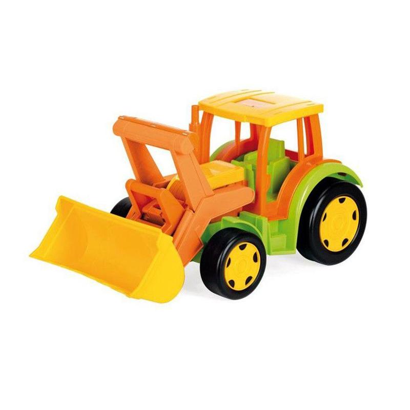 Великий трактор завдовжки 60 см. Має реалістичний вигляд і добре деталізований. Рухомий ківш трактора може підійматися й опускатися, а також повертатися в потрібне положення. Колеса та корпус дуже міцні та надійні. Діаметр коліс: великі — 17 см; малі — 12 см. Бренд: Wader Паковання: Без паковання Колір: Різнобарв Вага в упаковці: 2250 г Габарити в упаковці: 60 x 31 x 31 см Страна виробник: Польща Матеріал: Пластик Комплектація: Трактор