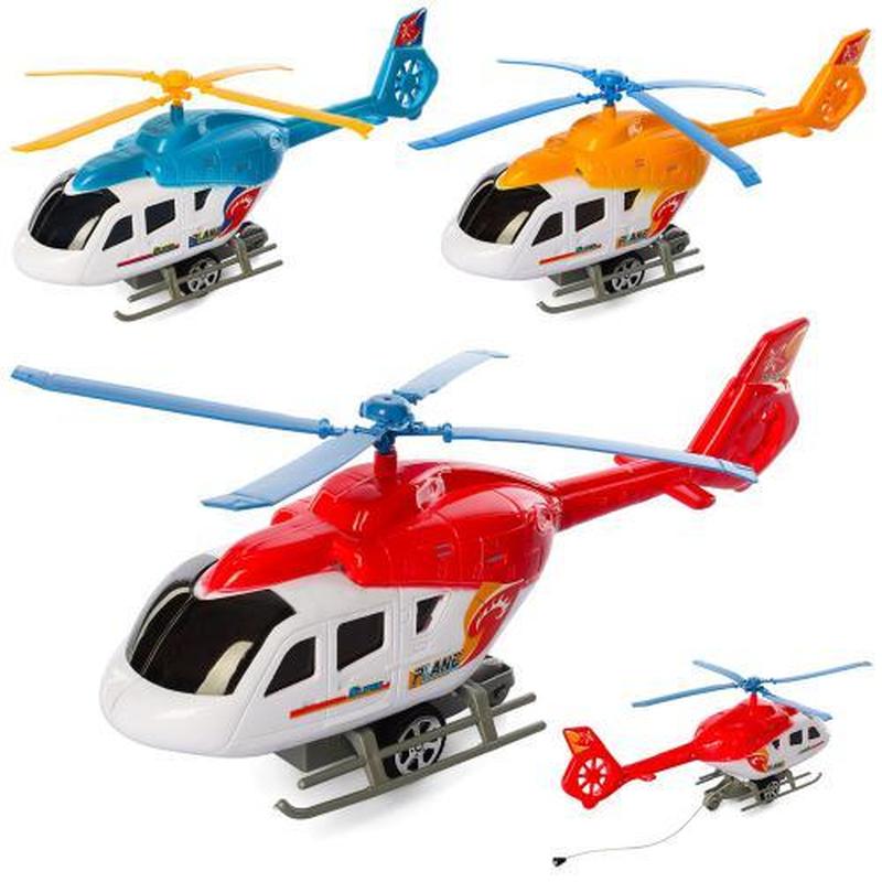 Іграшка "Вертоліт", 30 см, 3 кольори. Заводний, їздить, під час руху крутяться лопасті. Матеріал - пластик. Упаковка - пакет. Розмір - 18х6,5х30 см