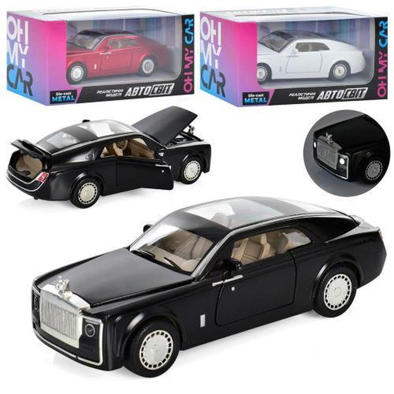 Іграшка "Автомобіль", 13 см, 3 кольори. Металева колекційна модель. Інерційний механізм. Гумові колеса, відчиняються двері. Є звукові та світлові ефекти. Живленн - батарейка типу таблетка. Упаковка - коробка. Розмір - 15х7х7 см.