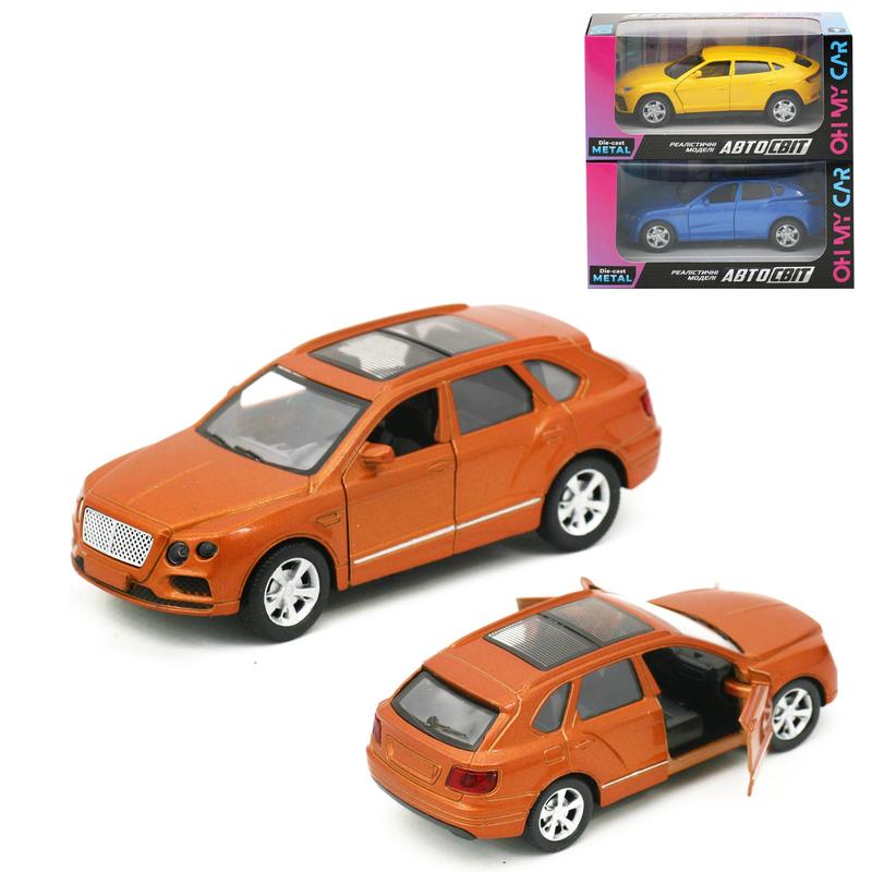 Іграшка "Автомобіль", асортимент видів та кольорів. Металева колекційна модель. Інерційний механізм. Гумові колеса, відкриваються двері. Є світло. Живлення - батарейка типу таблетка. Упаковка - коробка. Розмір - 15х7х7 см.
