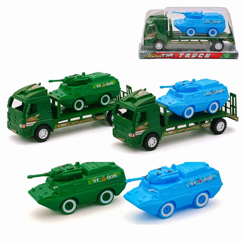 Іграшка "Військовий трейлер", 29 см, 2 види. Вантажівка та військова техніка в наборі. Інерційний механізм. Матеріал - пластик. Упаковка - слюда. Розмір - 31х10х15 см.