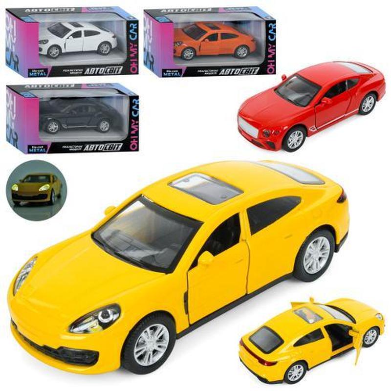 Іграшка "Авто", 12 см. 2 види, мікс кольорів. Масштаб - 1:32-38. Металева колекційна модель. Інерційний механізм. Гумові колеса, відчиняються двері. Є звукові та світлові ефекти. Живленн - батарейка типу таблетка. Упаковка - коробка. Розмір - 15х7х7 см.