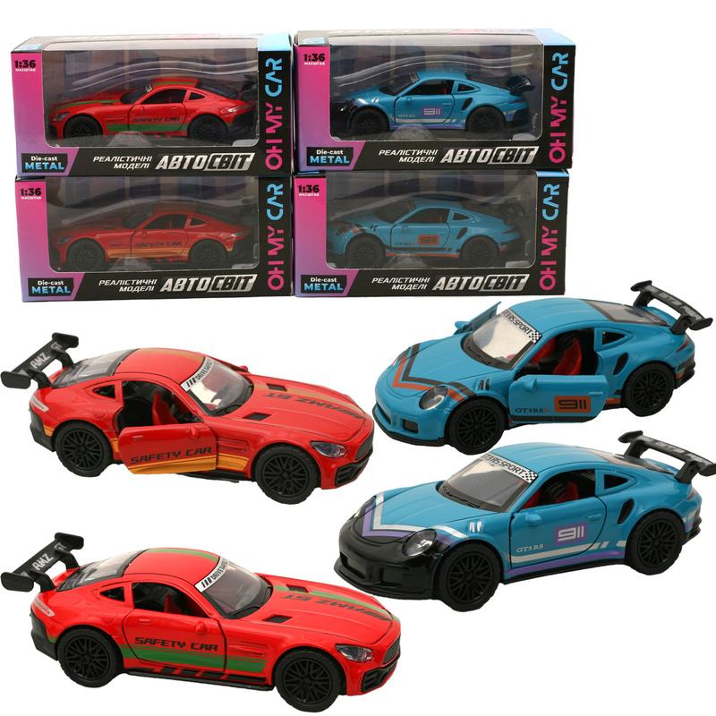 Іграшка "Авто", 11 см, 2 види, 4 кольори. Масштаб - 1:36. Металева колекційна модель. Інерційний механізм. Гумові колеса, відкриваються двері. Є звукові та світлові ефекти. Упаковка - коробка. Розмір - 15,5х6,5х7 см.