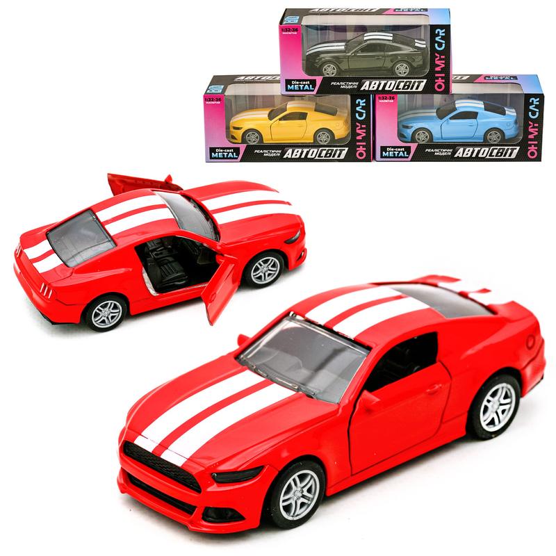 Іграшка "Спортивне авто", 4 кольори. Масштаб - 1:32. Металева колекційна модель, 12 см. Інерційний механізм. Гумові колеса, відкриваються двері. Паковання — коробка. Розмір - 16,5х7х7 см.