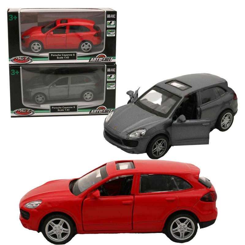 Іграшка "Porsche Cayenne", 11 см, 2 кольори. Масштаб — 1:43. Металева колекційна модель. Інерційний механізм. Гумові колеса, відкриваються двері. Паковання — коробка. Розмір - 14,5х6,5х7 см.