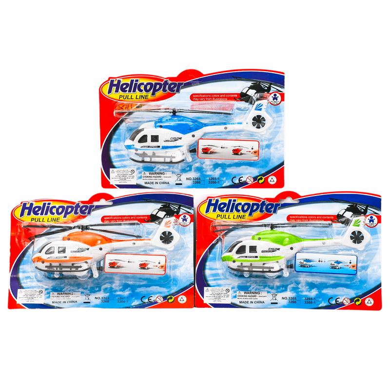 Іграшка інерційна "Вертоліт", різні кольори. З заводним механізмом та підвісними лопастями. Розмір - 24 см. Упаковка - лист. Розмір - 28,5х7х18 см.
