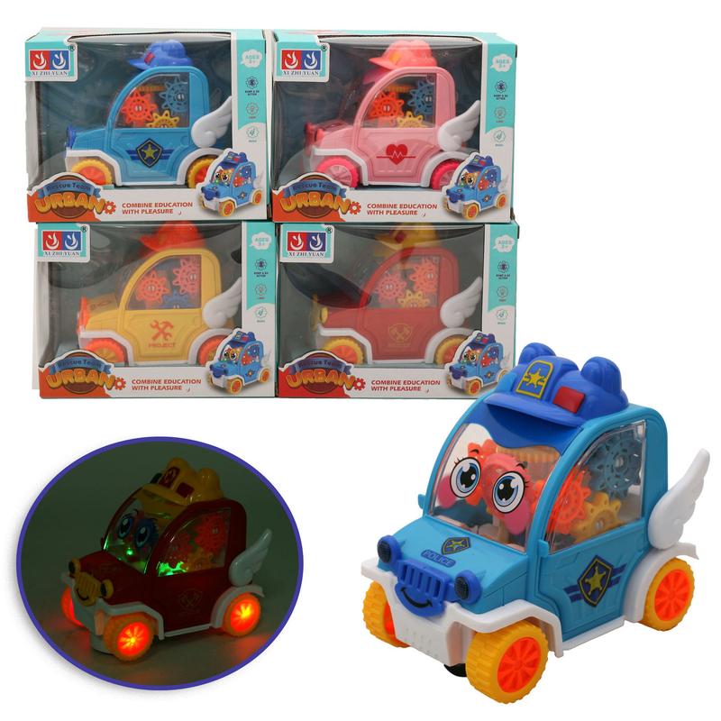 Іграшка "Музичне авто", 4 кольори. Прозорий корпус, кольорові деталі всередині. Є звукові та світлові ефекти. Розмір іграшки - 14х9х13 см. Живлення - батарейки. Матеріал - комбінований. Паковання — коробка. Розмір - 19х11,6х14,6 см.