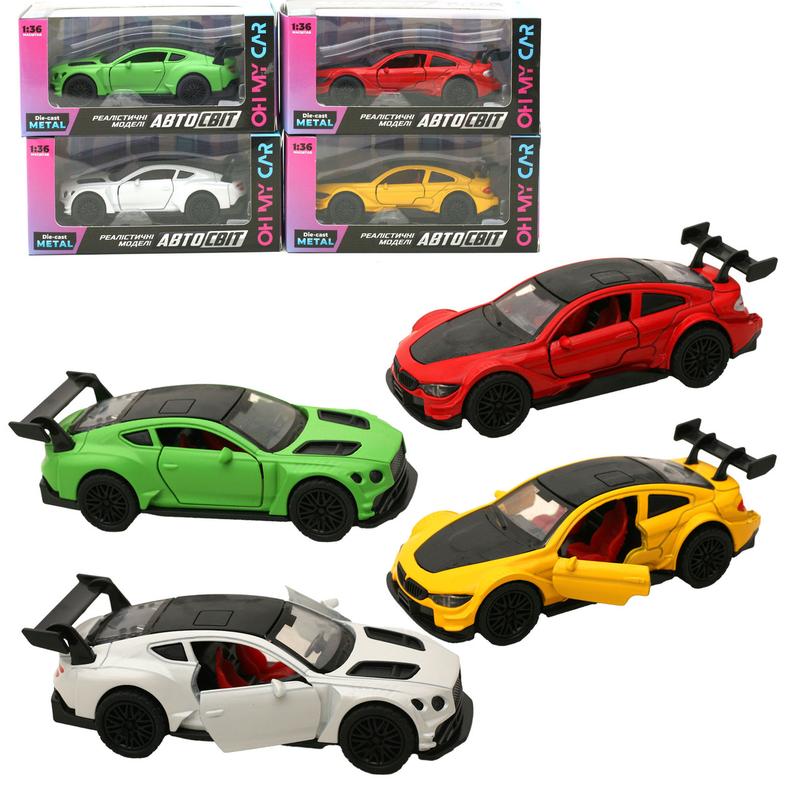 Іграшка "Авто", 11 см, 2 види, 4 кольори. Масштаб - 1:36. Металева колекційна модель. Інерційний механізм. Гумові колеса, відкриваються двері. Є звукові та світлові ефекти. Живлення - батарейка типу таблетка. Упаковка - коробка. Розмір - 15,5х6,5х7 см.