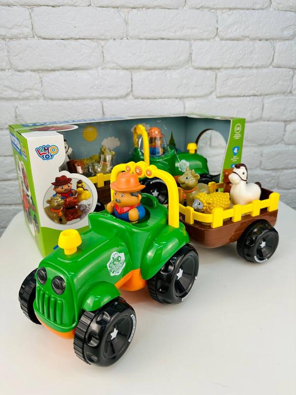 ✍️Описание: Озвучено на украинском языке🇺🇦 Музыкальный🎼 тракторец🚜 везет за собой прицеп, в котором сидит 4 животного: овца🐑 корова🐄 лошадь🐎 и собачка🐕 Во время езды трактор поет веселую песенку🎵 а также рассказывает стишки о каждом животном. Невероятное путешествие дополняется яркой подсветкой фар💡 и звуковыми эффектами🔊 это добавляет еще больше впечатлений к игре. 🔋Работает от 3 батареек АА (в комплект не входят). 📐Размер: 36см