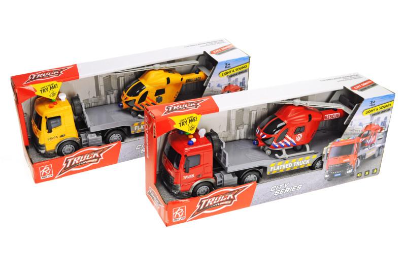 Автовоз з вертольотом інерційний, озвучений, зі світлом, 2кольори, в коробці rj3379 р.42*1...