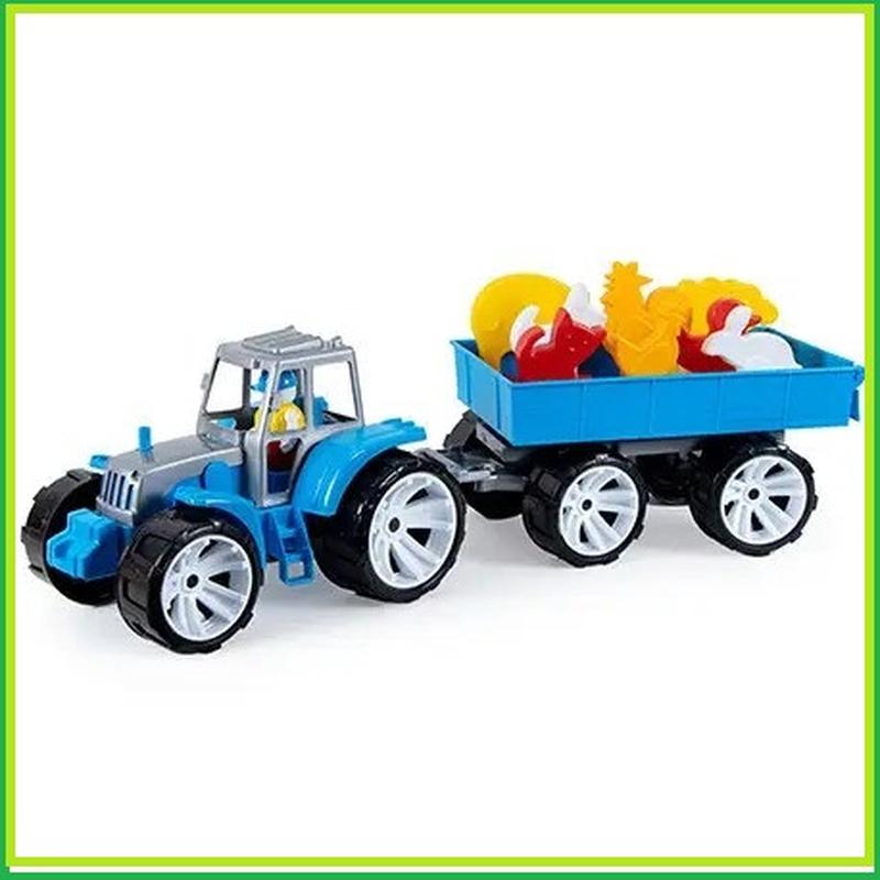 Іграшка дитяча "Трактор BAMS Ферма " - складається із трактора з фронтальним навантажувачем та причепа. Трактор BAMS Ферма" , арт.007/12, Набір дитячий, Бамсик Трактор має яскравий колір з великими білими колесами. В кабіні сидить фігурка водія. Фронтальний ківш призначений для захоплення та переміщення об'єктів. Великий кузов причепа підйомний з заднім бортом, що відкривається. Кузов можна від'єднати від тягача. Причіп приєднано до задньої частини трактора. Усередині причепа знаходяться фігурки звірів: собака, кіт, свиня, півень, курка, вівця та качка .Передній бампер оснащений спеціальним отвором, що дозволяє використовувати іграшку як каталку на мотузку. Ця іграшка призначена для дитячих ігор, пов'язаних з транспортуванням та сільськогосподарськими завданнями, а також розвиває у дітей уяву, та допомагає познайомитися з тваринним світом ферми. Виготовлений трактор з високоякісного, екологічно безпечного пластику. Розмір 58*19*21. Вага 1152 г.