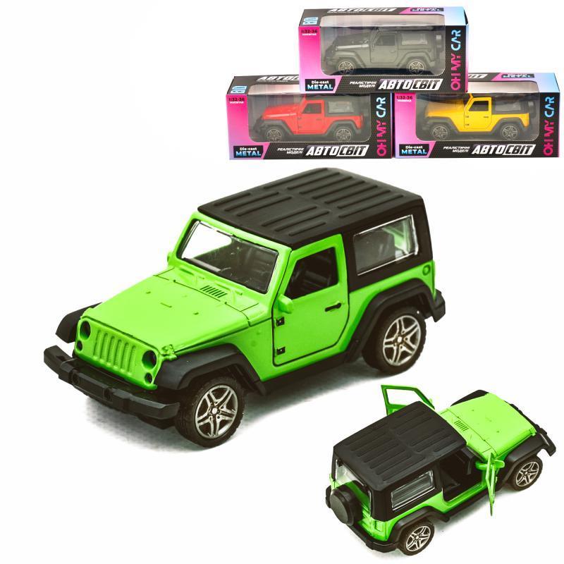 Іграшка "Джип", 4 кольори. Масштаб - 1:32. Металева колекційна модель, 11,5 см. Інерційний механізм. Гумові колеса, відкриваються двері. Упаковка - коробка.