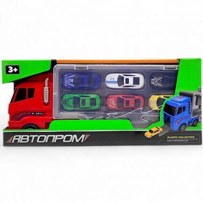 Трейлер із металевими машинками "автопром", червоний