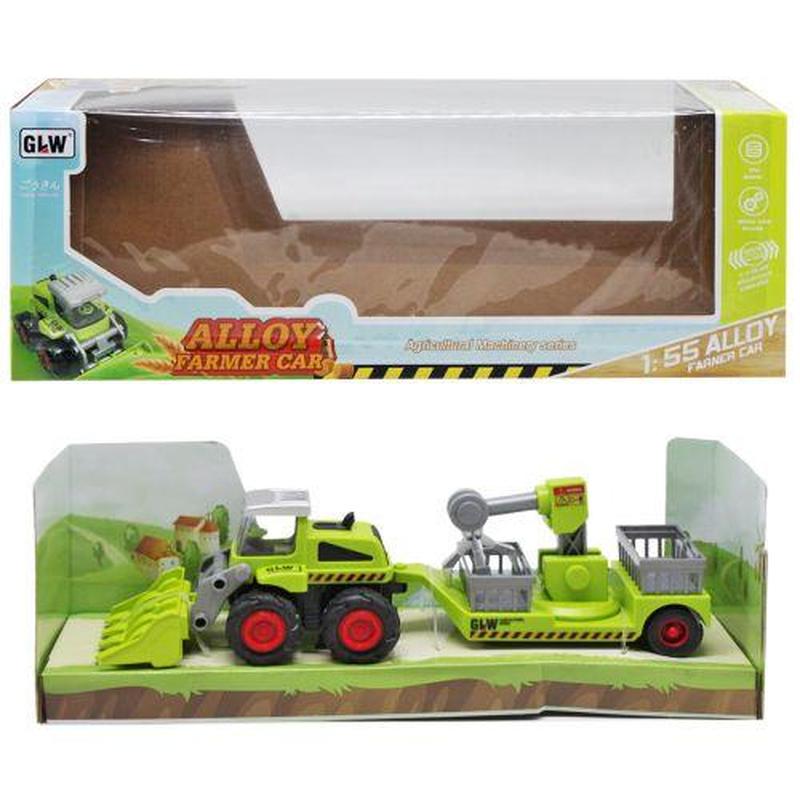 Инерционный трактор с прицепом. Высока детализация, колеса прорезиненные. Выполнен из качественных и безопасных материалов, подходят детям от 3-х лет. Имеет подвижные элементы. Размер трактора: 14х8х7,5 см, длина с прицепом 28,5 см.