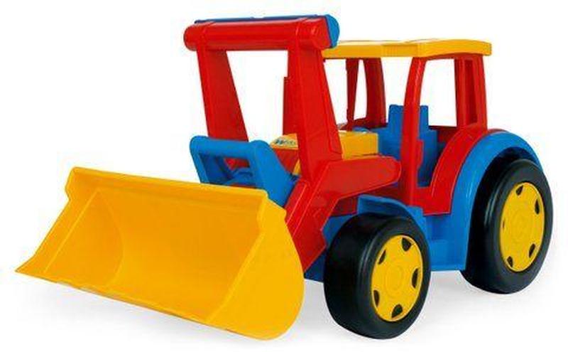 Яскравий пластиковий трактор з рухомим ковшем і великими колесами. Виготовлений з якісного пластику. Дитина може кататися верхи на тракторі. Вантажопідйомність трактора - 100 кг. Бренд: Wader Упаковка: Коробка Колір: Різнобарв'я Вага з упаковкою: 2900 г Габарити в упаковці: 55 x 32 x 36.5 см Габарити без упаковки: 55 x 32 x 37 см Країна виробник: Китай Матеріал: Пластик Комплектація: Машинка