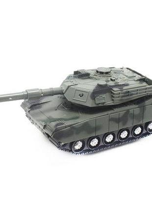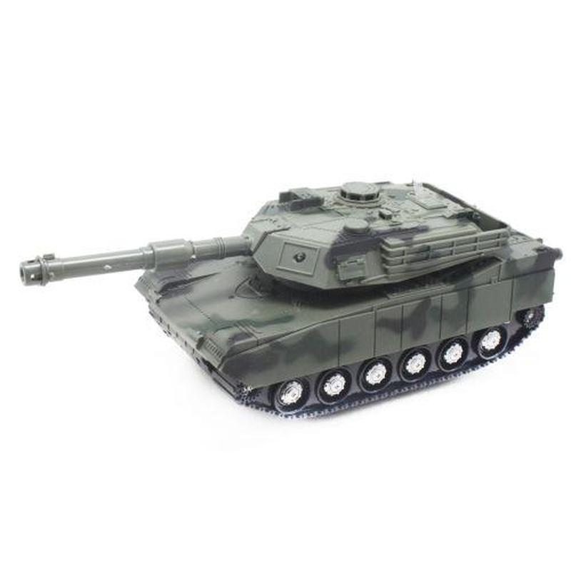 Танк на батарейках зі світловими та звуковими ефектами. Під час натискання на кнопку видає звуки стрільби. Їздить, може підніматися на поверхні під кутом 45 градусів. Верхівка танка обертається, дуло рухається вгору та вниз. Виконаний з якісних та безпечних матеріалів, підходить дітям від 3-х років. Працює від батарейок AG13. Упаковка: Коробка Колір: Темно-зелений Ел-ти живлення в комплекті: Так Вага з упаковкою: 300 г Габарити в упаковці: 14 x 36 x 13 см Габарити без упаковки: 14 x 35 x 12 см Матеріал: Комбінований Комплектація: Танк