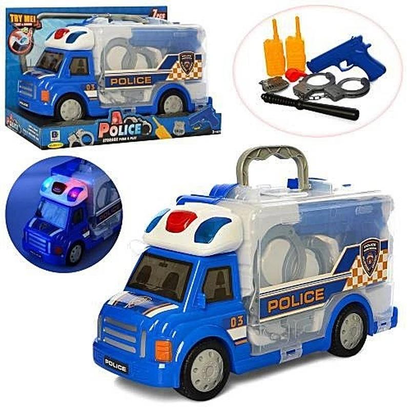 Машины на батарее. 661-173 полиц, с наб.полиции (наручен., пистолет, рация, палка), свет, звук, на батар., в коробке 35*22*15см