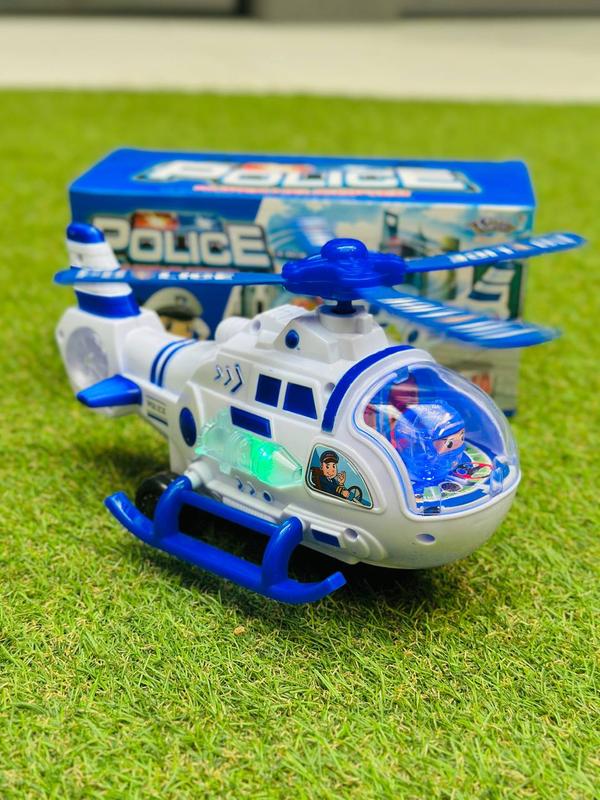 Спортивная модель имеет корпус с прозрачными вставками. Движение винтовла сопровождается работой лопастей, громким звуком сирены и эффектной подсветкой. Колесо свободного движения предоставляет возможность игрушке двигаться самостоятельно, имитируя погоню за преступниками. 🔋 Эффекты работают от 3 батареек типа АА (в комплект не входят); 📌Размер - 24х10х12 см.