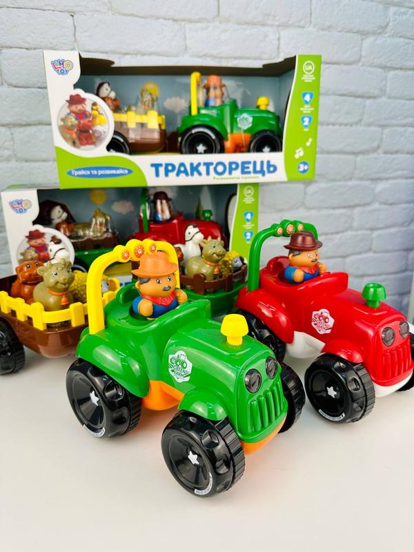 ! Особенности: 🇺🇦 Озвучено на украинском языке. 🔴🟢 Два цвета: Красный и Зеленый. Что умеет трактор: 🎵 Поет веселую песенку. 📖 Рассказывает стишки о каждом животном. 🚜 Везет прицеп с 4 животными: 886 🐑, коровой 🐄, конем 🐎 и собачкой 🐕. 💡 Яркая подсветка фар и звуковые эффекты 🔊 для еще большего наслаждения от игры. Преимущества: Развивает воображение и музыкальные способности. Учит о животных в веселой форме. Современный дизайн и качественные материалы. 📐 Размер: 36 см. 🔋 Работает от 3 батареек АА (не входят в комплект). 💬 Накладной платеж или полная оплата.
