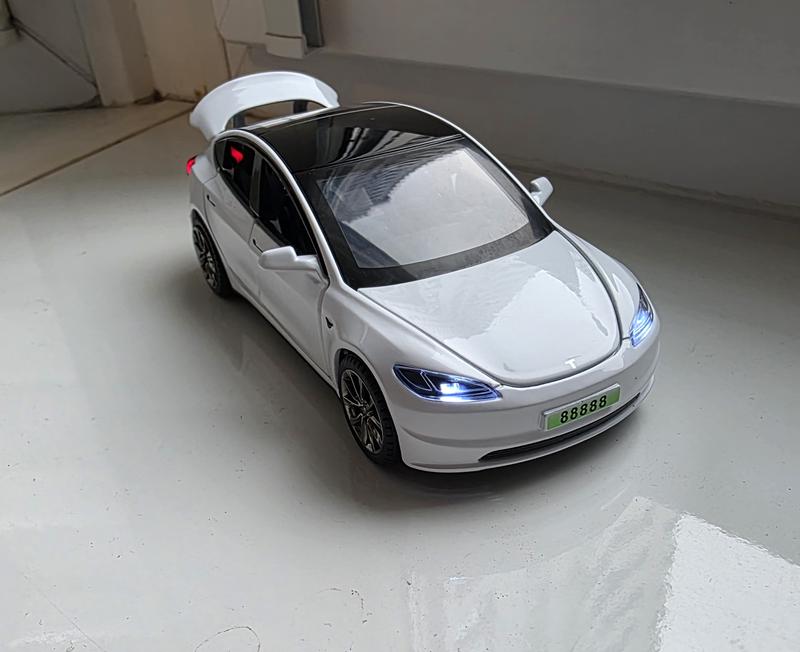 Коллекционная моделька Tesla Model 3 присутствуют звуковые сигналы, открываются капот багажник и 4 двери, на колесах резиновые покрышки,модель инерционная имеет мытальный корпус. ЦЕНА ВКАЗАНА ПО ОДНОНИЦУ.