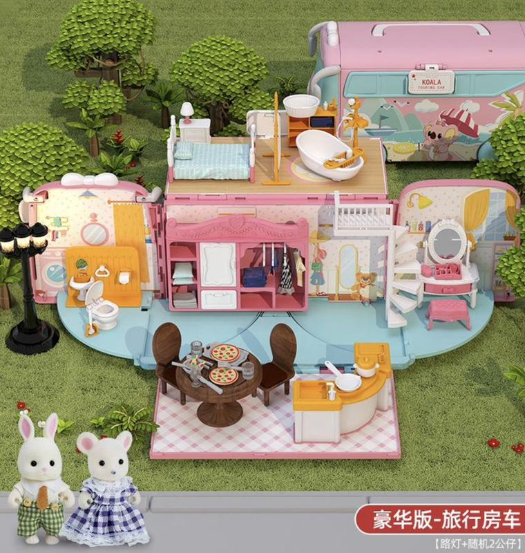 Чарівний ляльковий будиночок у вигляді розкладного автобуса. Усередині автобуса знаходиться безліч елементів інтер'єру та милі мініатюрні меблі для різних кімнат. У будинку є ванна, кухня, передпокій та спальня. Є іграшкова гойдалка. Вирушайте у веселу подорож із цим будинком-трансформером на колесах! Цей набір вміє складатися в невеликий автобус, в якому зручно зберігатиме всі меблі між ігровими сесіями, без жодного безладу та загрози втратити деталі. З цим ляльковим будинком ваша дитина розвиватиме дрібну моторику своїх рук і своє когнітивне мислення та фантазію, вигадуючи сюжети та місця, в яких його ляльки подорожуватимуть із цим чарівним фургончиком. Загалом у наборі цілих 72 елементи. Розмір автобуса у зібраному вигляді: 15.5 х 30 х 17 см. Розмір у розібраному вигляді: 40 х 54 х 17 см. Фігурки тварин набір не входять.