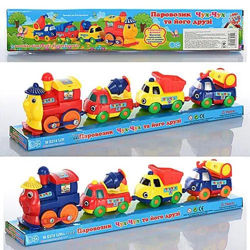Паровозик ↑Томас↑ M0374U/R - перед заказом, пожалуйста, уточняйте наличие (оптовый состав). 2 цвета, будтехника, звук, ездит, на батар., в слюде 34х9х6см