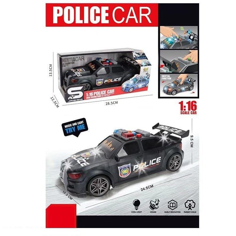 Іграшкова машина Поліція (JS 124 I), масштаб - 1:16, інерція, підсвічування, звук, рухомі елементи, в коробці Ця стильна та потужна поліцейська машина створена для маленьких героїв, які мріють про справжні погоні та порядок на вулицях іграшкового міста! Завдяки реалістичному дизайну, звуковим ефектам і яскравому підсвічуванню, кожна гра перетворюється на справжню спецоперацію. Машина оснащена інерційним механізмом, а багажник, що підіймається додає ще більше можливостей для сюжетної гри. Особливості: - масштаб: 1:16; - розмір: 24,5х10,5х9,5 см; - інерційний механізм; - рухомі елементи; - підсвічування; - звуки; - працює від 2х батарейок типу АА (додаються). Розміри / габарити - Довжина (см): 24.5 см - Ширина (см): 10.5 см - Висота (см): 9.5 см Розмір упаковки: 28 см × 12 см × 13 см Упаковка: Коробка Вік: від 3 років