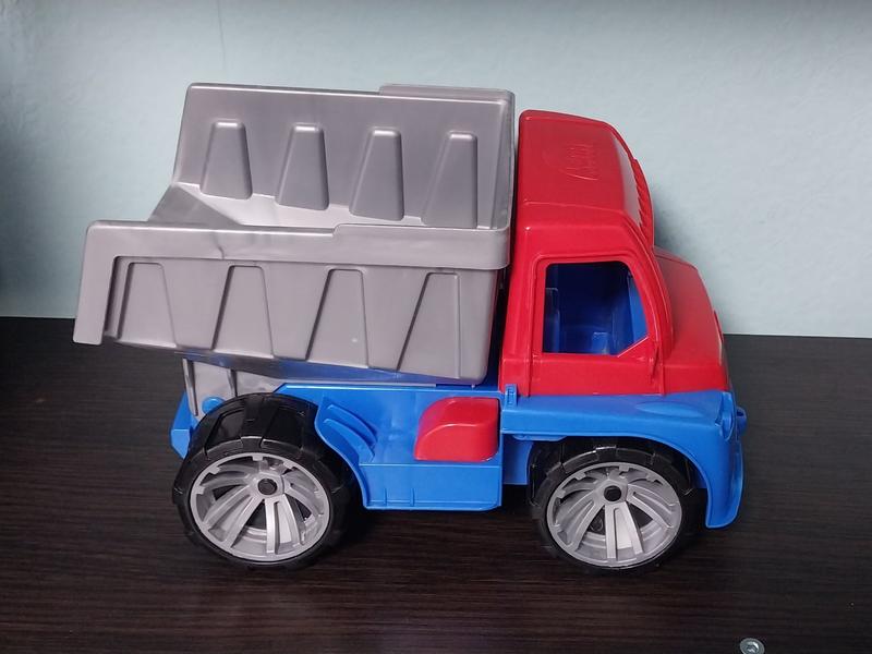 Питательный, в хорошем состоянии. Фиксируется кузов, есть куда привязать канатик. Все целое. Из недостатков в некоторых местах немного выгораний на солнце пластик и немного поржавело переднее соединение колес. На игру не влияет) Размеры: 27×14×16см.