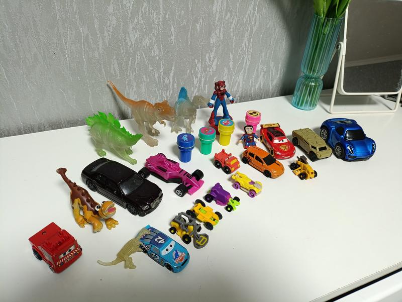 Продам набор детских игрушек (машинки, динозавры, фигурки) Продам набор игрушек, которыми сын уже не играет. Все в хорошем состоянии. В комплект входят: различные машинки (легковые, гоночные, строительные, герои из мультфильмов); фигурки динозавров; динозавры могут светиться в темные если подержать их возле света некоторое время фигурки супергероев; несколько маленьких контейнеров-игрушек. Подойдет как для игры дома, так и для подарок или пополнения коллекции. Отдам все вместе недорого.