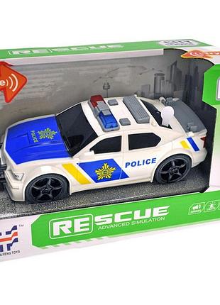 Полицейская машинка белого цвета с надписями на капоте и дверцах, просто обязан быть на вооружении каждого мальчишки. На крыше машинки размещены 2 серых кнопки. При нажатии на них включается звук полицейской сирены и светятся мигалки. Дополнительно на крыше установлена кнопка открытия багажника. Машинка изготовлена из пластмассы. Масштаб модели 1:20. Размер машинки 19 * 9 * 8 см. Размер коробки 24 * 11 * 16 см.