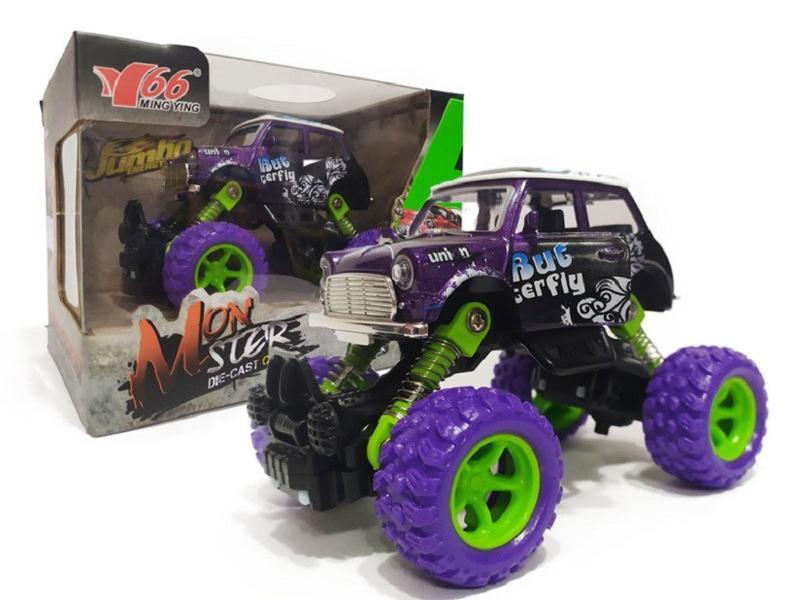 Металлическая машинка monster на больших резиновых колесах. Если нажать на крышу джипа сработают амортизаторы.