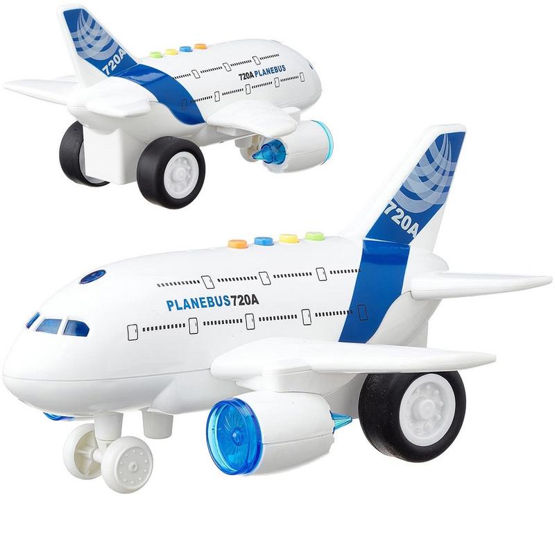 Музичний літак — це масштабовна модель літака, що реально існує, у масштабі 1:160. Іграшка обладнана напівпрозорими деталями, всередині яких встановлені діоди. Під час роботи іграшки вони яскраво блиматимуть синіми вогниками. Крім цього, літак обладнаний чотирма функціональними кнопками, що відповідають за звукові ефекти. Працює літак від 3 батарейок 1.5 V типу "AG13" (у комплекті). Літак обладнаний інерційним механізмом. Розмір літака 25 * 23 * 14 см. Розмір коробки 26 * 19 * 16 см.