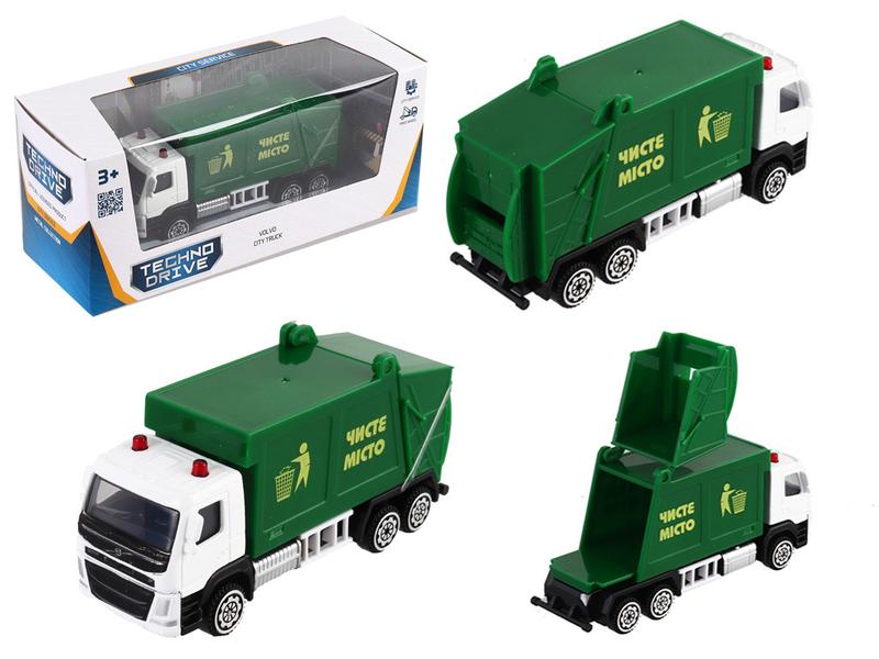Игрушка имеет функциональные элементы: у нее открывается бак для загрузки мусора. Благодаря металлическому кузову игрушка прослужит долгое время и будет устойчивой к ударам. Кроме игровой, игрушка имеет коллекционную ценность. Длина модели - 11,5 см. Рекомендовано для детей в возрасте от 3 лет.