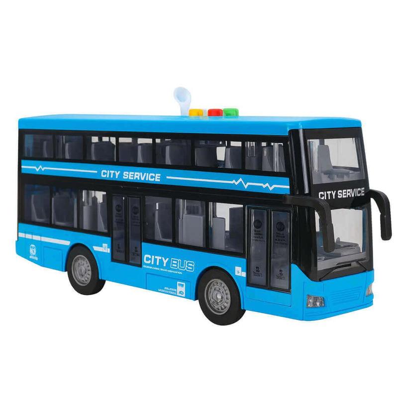 Игрушечный автобус city bus rj5504 синий — двухэтажный инерционный автобус со светом и зву...