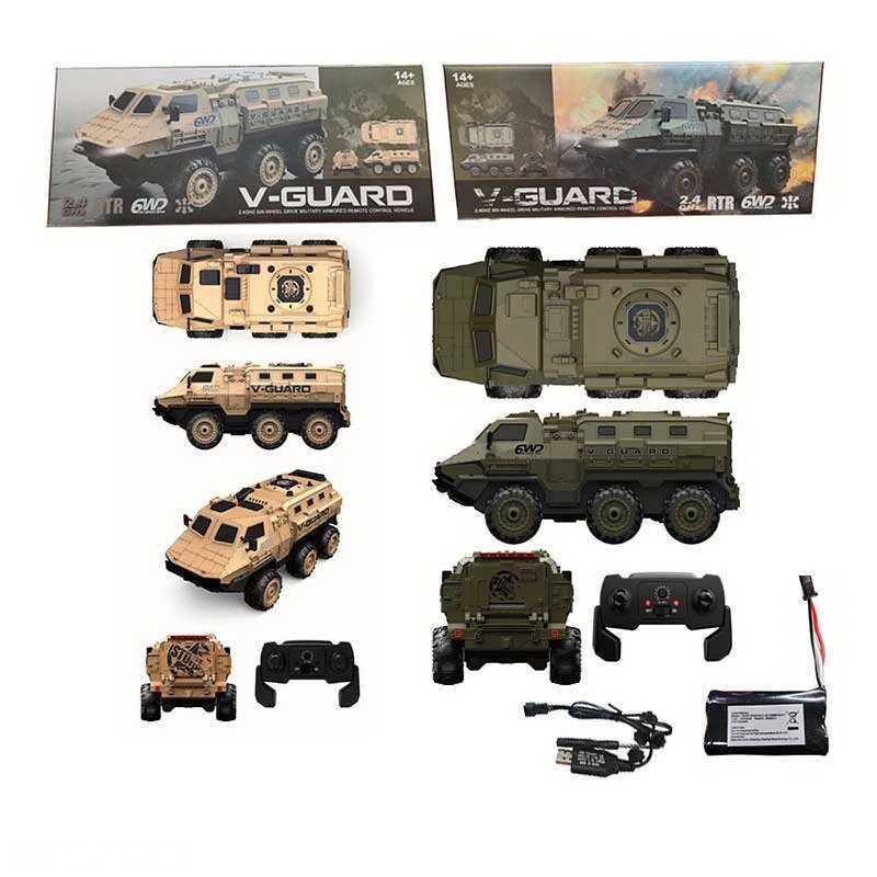 Почувствуйте невероятный драйв с радиоуправляемым автомобилем V-GUARD! Этот суперпрочный транспортное средство с впечатляющим дизайном и функциональностью создано для обеспечения максимального удовольствия во время игр. Благодаря своим шести колесам, автомобиль обладает отличной проходимостью, что позволяет ему преодолевать даже самые сложные маршруты. Реалистичный вид, вдохновленный настоящими военными машинами, делает его идеальным для активных развлечений на любом ландшафте. Основные характеристики: - Длина автомобиля - 27 см; - Яркая подсветка для дополнительной аттракции; - Работает от аккумуляторной батареи 7,4 V; - USB-кабель для удобной зарядки аккумулятора в комплекте; - Пульт управления 2,4 Ghz, работающий от 2-х батареек “АА” (не входят в комплект); - Пульт расположен внутри машины для удобства; - Открывающиеся задние двери для еще большей реалистичности; - Резиновые колеса для улучшения сцепления; - 6 WD - полный привод на шести колесах, обеспечивающий стабильность и контроль на любой местности.