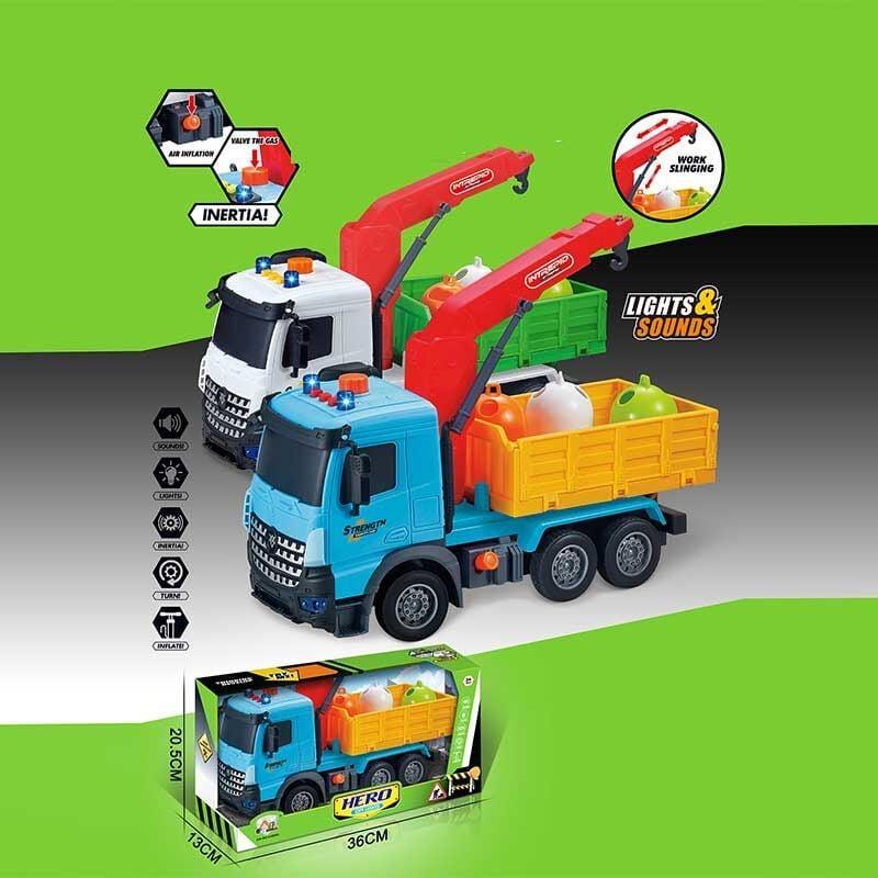 Подробная модель грузовой машины с открытым кузовом. Спецтехника имеет отличную детализацию: кабина с проблесковыми маячками, кузов с подвижными элементами, тематические наклейки и другими элементами настоящего аналога. Машина оборудована инерционным механизмом, поэтому движение на большой скорости не станет проблемой. Прорезиненные колеса с реалистичным протекторным узором подарят машинке мягкое и плавное движение. Размеры/габариты: - длина (см): 28 см - ширина (см): 11 см - высота (см): 16 см.
