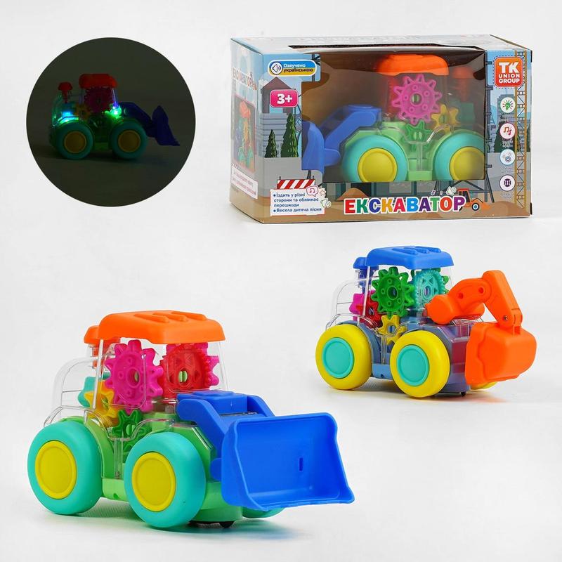 Ця музична машинка від бренду "TK Group" нагадує казкову будівельну спецтехніку, створену фантазією малюків. Основна її магія розкривається зсередини, адже за прозорим корпусом екскаватора приховані чарівні механізми, які, взаємодіючи між собою, створюють цікаве кольорове міні-шоу. Барвисті шестерні розташовані як калейдоскоп, і вони обертаються у такт веселій пісеньці українською мовою. Особливості: - відтворює веселу пісеньку українською мовою; - напівпрозорий корпус з обертовими шестернями всередині; - екскаватор оснащений колесом вільного ходу; - яскраве підсвічування; - тип живлення - 3 батарейки “АА” (не додаються); - яскравий дизайн іграшки у поєднанні контрастних кольорів; - рухомий ківш; - машинка виготовлена з якісного пластику, безпечного для здоров`я дитини. * Характеристики та комплектація товару можуть змінюватися виробником без повідомлення.