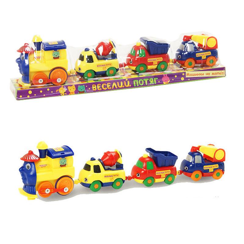 Паровозик на батарейках (работает с помощью одной батарейки типа АА( в комплект не входит)), 3 машинки, которы еможно соединить между собой с помощью магнитов, ездить в перед, упаковка на укр. языке, под слюдой 33,5*6*9см, размер игрушки 32*5*7.5см Вашего малыша непременно позабавит яркий детский паровозик. В комплект входят 4 разноцветные вагончики-машинки, которыми можно играться как отдельно, так и соединять между собой с помощью магнита. Работает с помощью лишь одной батареи типа АА, в комплект не входит. Такая игрушка будет содействовать развитию мелкой моторики рук, воображения малыша и дарить ему хорошее настроение.