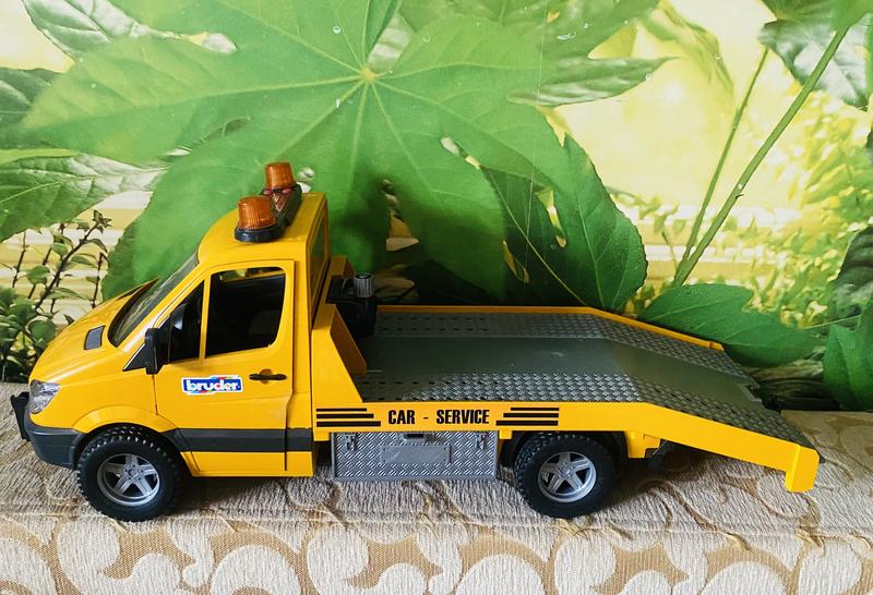 Крутой эвакуатор Bruder Mercedes-Benz Sprinter Car Service! 🚛🟡 Оригинальная немецкая игрушка Bruder (Германия), масштаб 1:16 — одна из самых качественных и детализированных! • Модель: Mercedes-Benz Sprinter эвакуатор (Car - Service) жёлтый • С платформой, которая поднимается/опускается • Рабочая лебёдка (тросик) для погрузки • Оранжевые мигалки на крыше • Открывающиеся двери, кабина, детали как у настоящего Mercedes • Прочный пластик, всё крутится, двигается — идеально для мальчиков 3–10 лет (и коллекционеров!) Состояние: б/у, но в отличном виде — без поломок, все механизмы работают, ничего не отломано, чистая. Играли аккуратно, хранилась дома. Почему Bruder круто: • Немецкое качество — не ломается, как китайские аналоги • Реалистичные детали, функционал (лебёдка, платформа, мигалки) • Новые такие стоят 2500–4500 грн