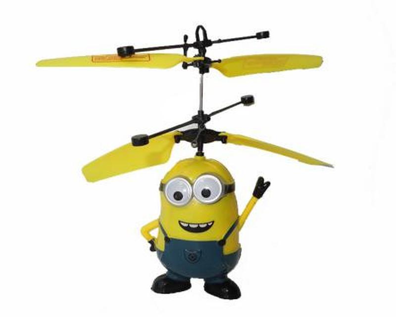 Летающий Миньон Наверное, каждый человек после просмотра мультфильма «Гадкий я» захотел иметь у себя в помощниках Миньона. И вот настало то время, в 2015 году появилась игрушка летающего Миньона, которая сразу обрела популярность, как среди детей, так и их родителей. С управлением справится любой ребенок. В игрушку встроены датчики, которые определяют другие объекты и, приближаясь к ним, меняет свое направление. Вы можете просто подставлять ладошку, для того чтобы управлять им. Игрушка достаточно легкая, за счет этого беспрепятственно поднимается вверх и летает. Летающий Миньон работает как от простых батареек типа ААА так и от аккумулятора, который заряжается при помощи USB-кабеля, который идет в комплекте. Игрушка не только подарит радость вашему ребенку, а и способствует развитию, улучшает реакцию ребенка и его внимание. Характеристики: - Время полета: 10-15 мин.; - Время зарядки: 20 мин.; - Материал: пластик; - Цвет: Желтый; - Вес: 150 г. Комплектация: USB-кабель -