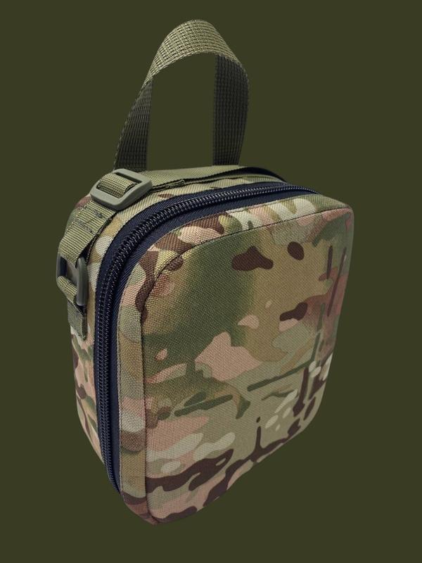 Сумка-чехол для пульта управления RadioMaster TX 12 или схожего по размеру оборудования. Подсумок мультикам для пульта управления квадрокоптера. Защищает пульт от ударов, царапин, пыли, влаги и воздействия ультрафиолета. Внутри фиксируется резинкой. Дополнительная ручка для транспортировки. Характеристики: Ткань: Оксфорд 600D ПВХ (прорезиненная внутри) Каркас: Пластик Цвет: Мультикам, Пиксель ММ14, Олива Фурнитура: Усиленная Нить: Армированная Крепление: Система Molle Молния: Металлическая с двумя бегунками Размеры: - Высота - 21 см - Ширина -18 см - Глубина - 8 см Собственное производство Мелкий и крупный опт, дропшипинг г. Одесса, Жуковского 38, +38**********