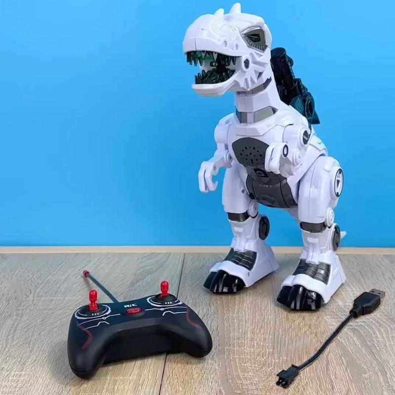 Игрушечный робот динозавр на радиоуправлении пускает дым рычит и светится на аккумуляторе