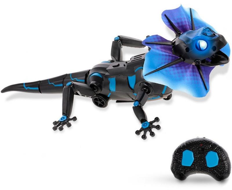 Плащеносная ящерица Lizardbot - отличный подарок для ребенка. Высокая детализация и выразительные светоотражающие глаза делают ящерицу похожей на настоящую рептилию. Благодаря современной роботизированной технологии ящерица быстро бегает реалистично и двигает хвостом. Управлять игрушкой можно с помощью пульта управления, 4 режима работы. 1. Работа от пульта-ящерица движется вперед-назад, издает устрашающие звуки, раскрывает пасть и плащ. 2. Обход препятствий при обнаружении препятствия ящерица замирает, издает устрашающий крик, отходит назад и меняет направление. 3. Следование за рукой. 4. Режим охоты. Ящерица замирает в ожидании добычи, как только ящерица засекла объект, она выходит из укрытия с устрашающим криком, наступает. Затем отступает и снова замирает в ожидании следующей добычи. Каждому режиму соответствует свой цвет индикатора в глазах. Радиус действия игрушки до 10 м. Пульт работает от 3 батареек типа ААА (в комплект не входят). Ящерица работает от 4 батареек типа АА (в комплект не входят). Вес ящерицы 248 гр. Размер ящерицы 38 * 21 * 11 см. Размер коробки 40 * 12 * 25 см.