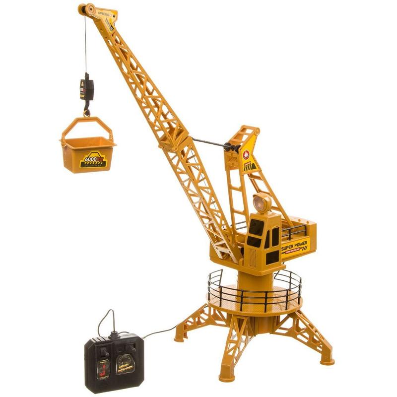 Детский подъемный кран выполнен с максимальной реалистичностью имеет все основные функции для полноценного использования игрушки. Кран оснащен лебедкой с тросом, с помощью которой можно поднимать и опускать корзину со строительными материалами. В корзину маленький строитель может положить необходимые строительные материалы. Корзина съемная. Стрела крана крепится крючком только в одном положении. Ребенок сможет управлять краном с помощью удобного дистанционного пульта. Пульт оснащен двумя рычагами. Рычаг слева приводит в действие спуск и подъем груза. Правый рычаг поворачивает башню крана на 360 градусов. Работа подъемного механизма крана сопровождается подсветкой прожектора на кабине водителя. Кран соединен с пультом проводом длиной 85 см. Пульт работает от 3 батареек типа АА (не входят в комплект). Размер в собранном виде 53 * 22 * 58 см. Размер коробки 26 * 12.5 * 29 см.