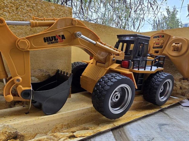 Игрушечный колесный радиоуправляемый экскаватор желтого цвета huina toys м 1:18 || kilomet...