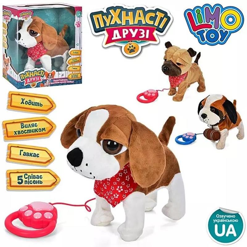 Музыкальная Собачка M4879IUA 3 вида, пульт д/у, ходит, движение.хвостом, плюш., муз.(укр.менная), на батар., в коробке 28.5*27*15см