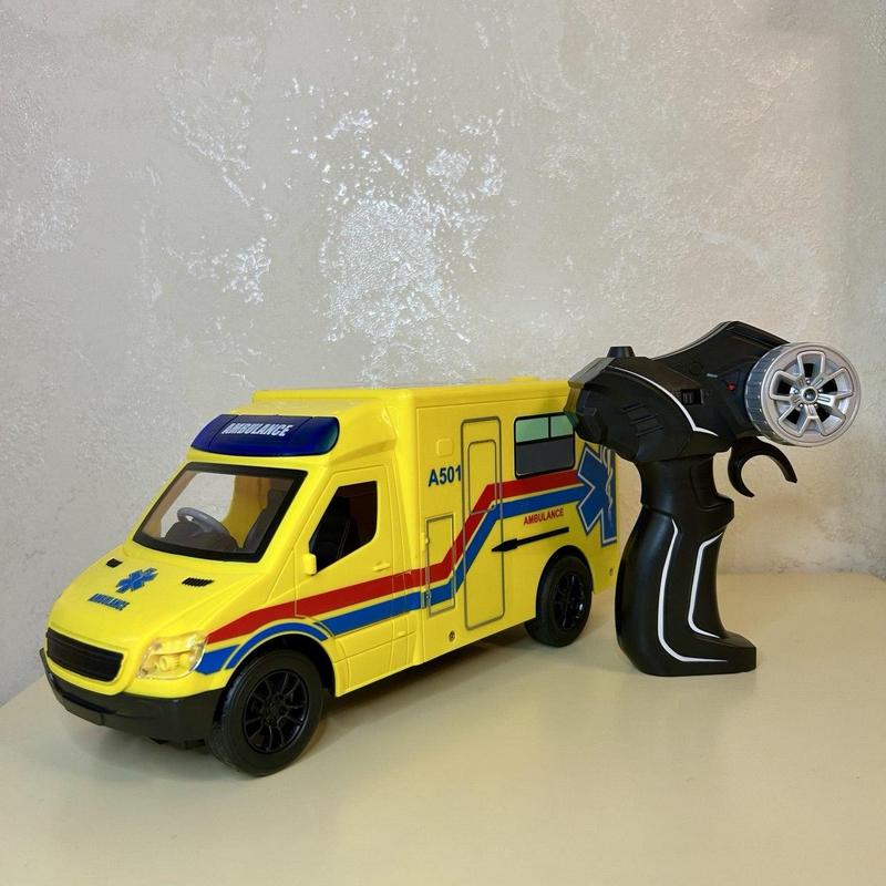 Іграшка швидка допомога 29 см на пульті керування, сирена, горять передні фари, відчиняють...