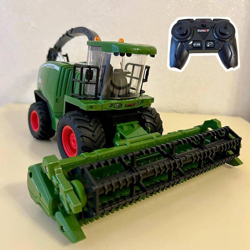 Комбайн на пульте управления 1:24 26см зерноуборочный , выпускает пар , звук , горят фары...