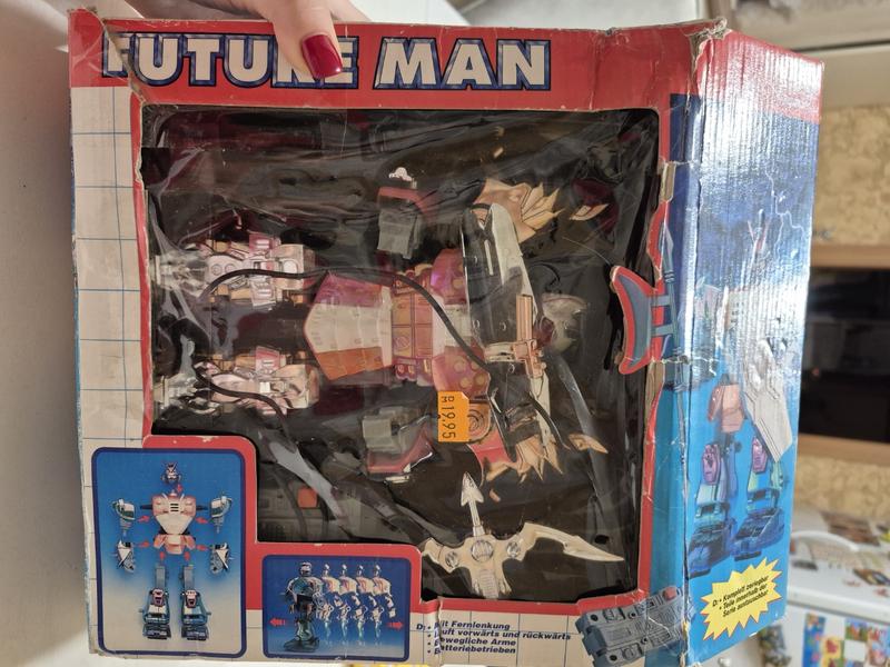 Назва продукту: Future Man Опис німецькою мовою на коробці. З дистанційним керуванням, рухається вперед і назад, Рухомі руки.Працює від батарейок