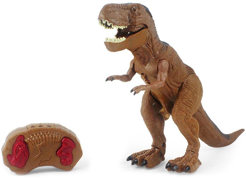 Перед вами динозавр Тираннозавр новинка в нашем онлайн -- магазине. Управление динозавром производится с оригинального пульта, который выполнен в виде древнего камня. На пульте есть всего 2 кнопки, одна отвечает за движение вперёд, другая -- за движения головой. Во время движения у динозавра светятся глаза и он грозно рычит. Главным преимуществом игрушки является функция пускания пара из пасти. Для этого откройте отсек, расположенный на голове динозавра и аккуратно залейте чистую прозрачную воду в отсек. Затем нажмите кнопку на хвосте, чтобы активировать режим. Для работы игрушки требуются 3 батарейки типа AA 1,5В (не входят в комплект). Для работы пульта ДУ требуются 2 батарейки типа AA 1,5В (не входят в комплект). Дистанция управления до 15 метров. Размер коробки 29 * 9 * 28 см.